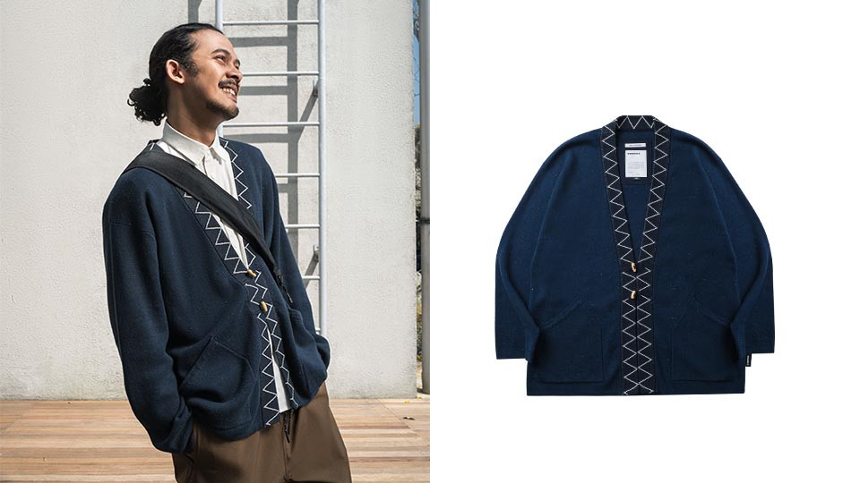 For those seeking a stylish yet warm option, the Depiction Noragi Cardigan is perfect. Made from soft cotton knit, it provides warmth while adding a fashionable touch with wooden button details and zigzag embroidery on the collar.